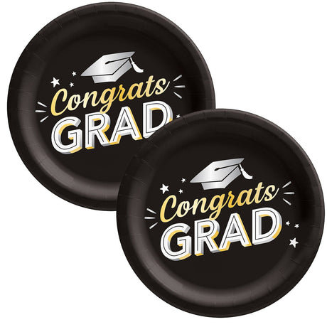 Black Congrats Grad 8 1/2" Round Disposable Dinner Plates – 8 Count
